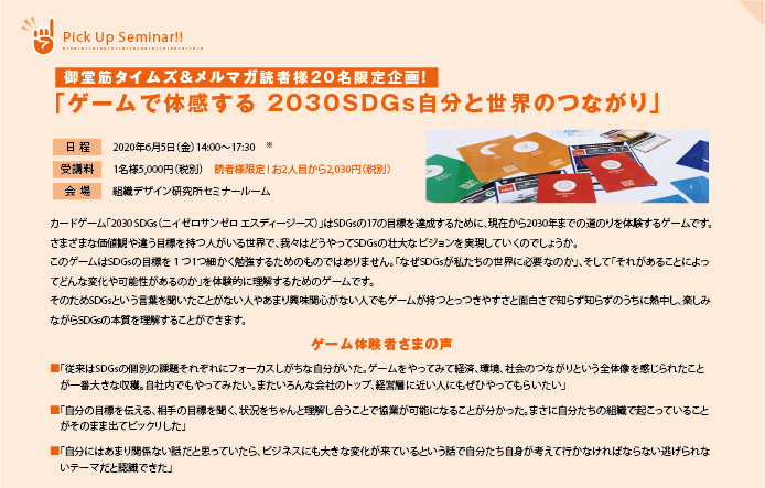 もちろん書籍や絵本などもたくさん出ており、SDGsはより身近にはなってきてはいますが、教科書レベルだとなかなか腑に落ちないものです。弊社では、SDGsを体感していただくためのカードゲーム「2030SDGs」(※)を昨年導入し、社内研修はもちろんお客様へもご提供させていただいております。