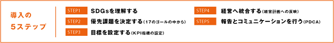 「とはいえ、何から取り組んでいいかわからない」とお悩みの方のために、まずは次の5つのステップの実施をおすすめいたします。