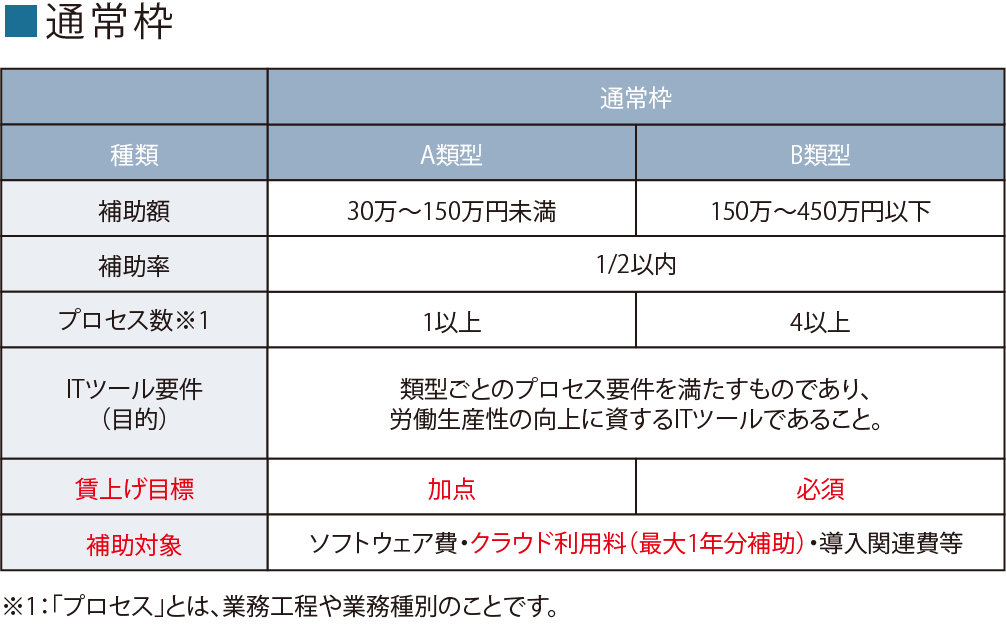 通常枠とデジタル化基盤導入類型の概要は下記の表になります。